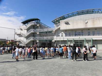 校庭で体育朝会を行いました。