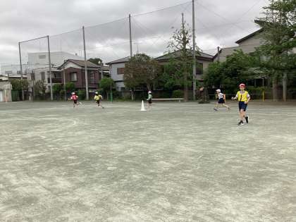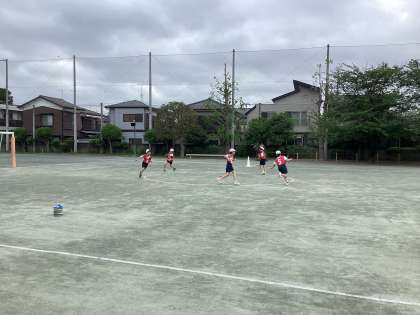 チームで場を選びながら体を傾ける練習や、バトンパスの練習をしました。そして、学習の後半には、チーム対抗のリレーを行いました。回を重ねるごとに技能が向上するだけではなく、顔つきが真剣になっていました。5年生が始まってまだ1か月ですが、高学年っぽい様子が学習の中でも見られるようになってきました。