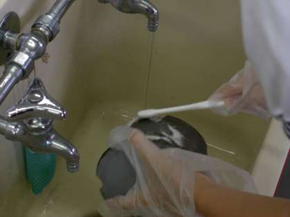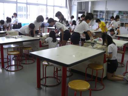 6年生は、家庭科でそうじの仕方の学習をしました。3組は、家庭科室、2組は、ランチルーム、1組は、理科室の掃除を実際にしました。今日は、1組が、理科室の掃除をしました。家から道具やゴム手袋を持ってきた子どももいます。小松先生に教えていただき、全員で流しやテーブルの上を磨いてぴかぴかにしました。