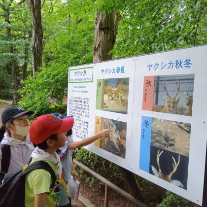 井の頭動物公園に到着しました。班ごと周りながらクイズの答えを探していきます。