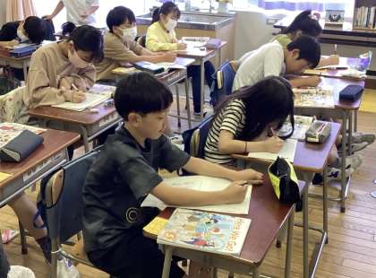 英語を楽しく学ぶ5年3組の子供たち。とても素晴らしいです。