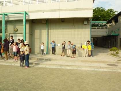 日食が進むにつれて児童や保護者の皆様も集まり始め、食の最大となる