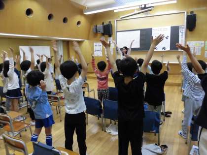 体を動かしながら歌う子どもたちはとっても楽しそうです。