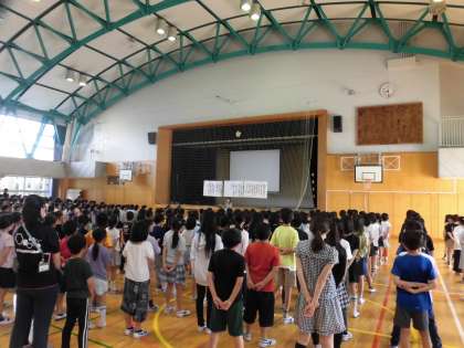 今朝は音楽朝会です。「つばさをください」を全校で歌いました。昨年度の音楽朝会では、感染症の影響でみんなで歌うことができなかった曲でした。今日は全校児童のすてきな歌声が響きました。