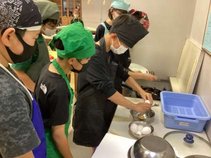 卵を一人1個割ります。