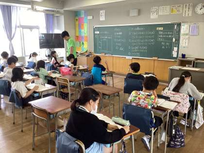 5月24日(金)5校時、5年生は算数を習熟度別に学習していました。今日は、「整数の時に成り立った計算のきまりは小数のときにも成り立つのか」という問いをもち、学習を進めていました。小数同士のかけ算をくふうして求められたときは、子供たちはうれしそうでした。5年生のみなさん、頑張っていますね。