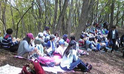 全員元気で鉱石山山頂まで登りました。お弁当を食べています。