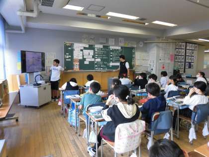 新潟県南魚沼市が米作りに適していることを、土地利用についての地図や気温・降水量のグラフ等様々な資料を読み取り、確認しました。5年生は自分たちでも稲を育て始めているので、農家の人々の米作りの工夫や思いについて、より身近なものとしてじっくり考えてほしいです。