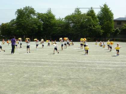 今日は、校庭で運動会の練習がありました。