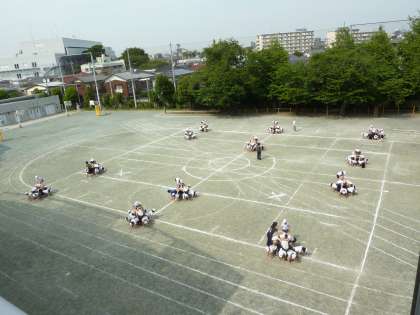 運動会の練習の様子です。校舎改築に伴い、八幡山小学校の