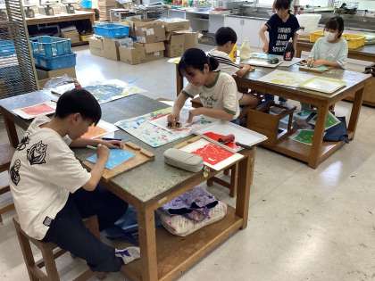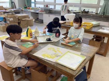 6月14日(金)3・4校時、5年3組の子供たちは図画工作の学習をしていました。白くしたいところを彫り、版画をしていました。うまく刷れたら、子供たちは驚いていました。作品を見合って、互いに褒め合う様子も見られました。よい作品ができてきましたね。