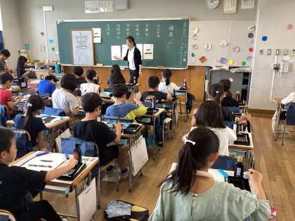6月14日(金)3校時、3年1組の子供たちは書写を学習していました。この日は、横画を学習しました。漢数字の「二」を字形を整えながら書きました。よい姿勢で頑張っていました。すてきです。