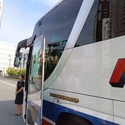 バスに乗って出発します。