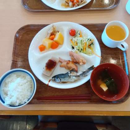 今晩の夕食メニューです。今日は雨のためマスつかみができなかったのですが、夕食に焼いたマスをつけていただいています。