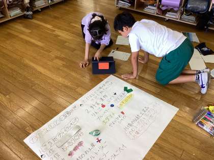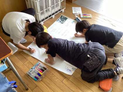 7月6日(土)2・3校時、5年3組の子供たちは総合的な学習の時間の学習に取り組みました。今まで、課題を設定し、学習計画を立て、川場移動教室においても情報収集を行い、情報を精選し、その情報を整理・分析してきました。現在は、発表に向けて、各グループにおいて発表方法を工夫して資料・台本作りをしています。子供たちの表現力は素晴らしいです。頑張っています。