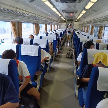 3号車の様子です。さっそくお昼の時間です。お弁当ありがとうございます。おいしそうです!