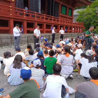 東照宮の見学を始めます。ガイドさんに案内していただきます。