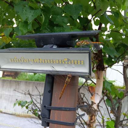 ラジオ体操の写真がうまく掲載できないので、朝会を行っている駐車場にたくさんいるトンボをご覧ください!
