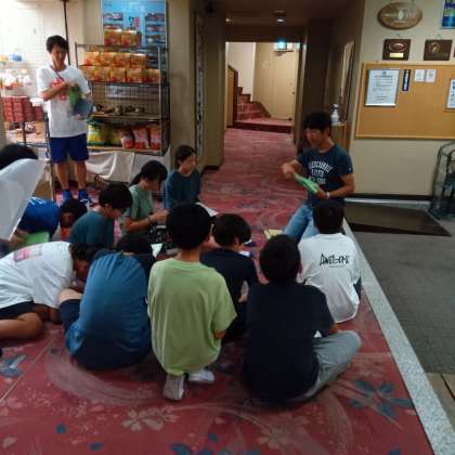 室長会議です。今日の振り返り、明日出発なので朝忙しいこと、ふとんの片付け方などの話がありました。