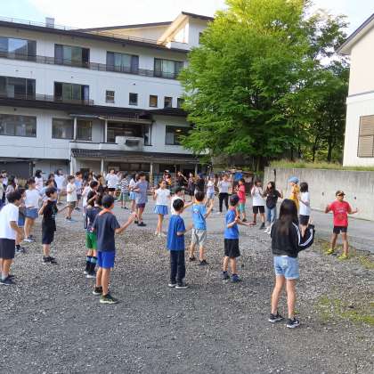 今朝の体操は子どもたちのリクエストでエビカニクスをやりました。運動委員会の子も頑張りました。