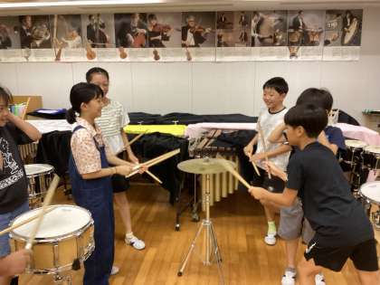 まず、楽器やリズムを選び、そして、創作し、発表するという学習の流れで、授業が進められていました。子供たちは、とてもやる気をもって取り組んでいました。聴いている私も、ウキウキしました。「音を楽しむ」子供たち。とてもすてきです。