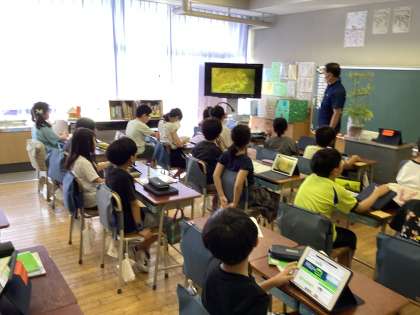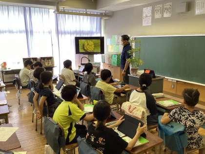 9月6日(金)1・2校時、5年3組の子供たちは理科を学習していました。アサガオを実際に分解しながら、花のつくりを確かめました。そして、動画を見ながら、理解を深めました。