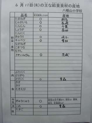 6月11日の主な給食食材の産地です。
