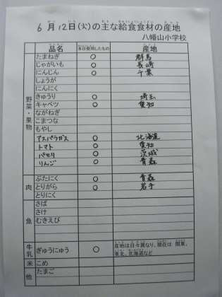 6月12日の主な給食食材の産地です。