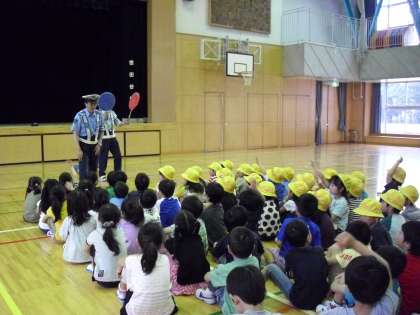 11日(月)に、成城警察の方にお越しいただき、交通安全教室を行いました。