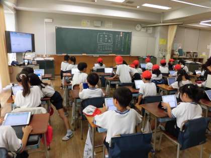 写真は、みつけた言葉をロイロノートに入力しているところです。