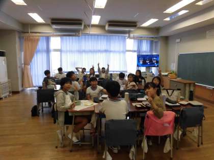 左:ハチリンピックの練習に出かけている子どもたちもいる時間帯でしたが、5年生の楽しいお弁当の様子です。毎日お弁当のご用意、ありがとうございます。