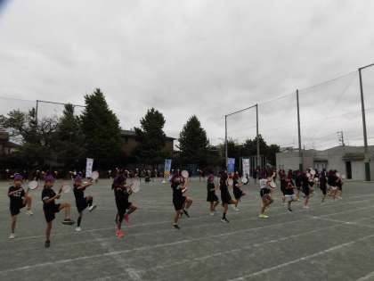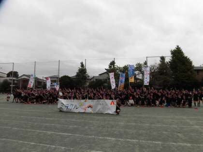 下:表現の最後の場面。各クラスの幟もできてきました。