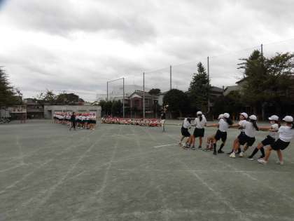 中:赤白分かれてつな引きの作戦を考えているところです。