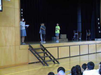 今朝は児童集会で「人間間違い探しクイズ」を行いました。