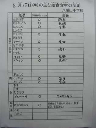 6月15日の主な給食食材の産地です。