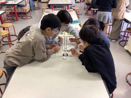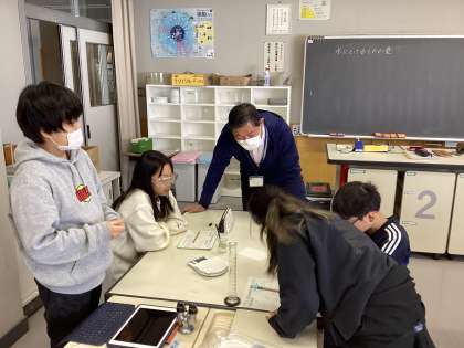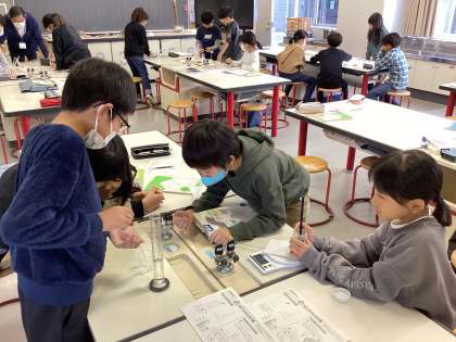 11月8日(金)1・2校時、理科室では面白そうな実験をしていました。5年3組の子供たちが、食塩の量を計り、水に溶かしていました。どのくらいの量が溶けるのでしょうか。子供たちはわくわくしながら実験に取り組んでいました。子供たちの学ぶ意欲、すてきです。