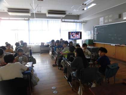 お弁当の時間に、各学年の展覧会見どころ動画を鑑賞しました。この動画は展覧会会場でも見ることができます。ぜひご覧ください。