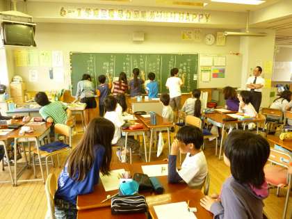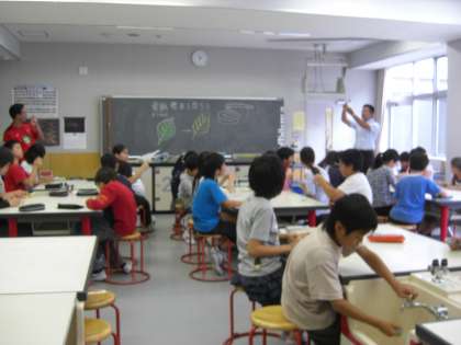 今日は、緑丘中学校の先生が八幡山小学校に来て、