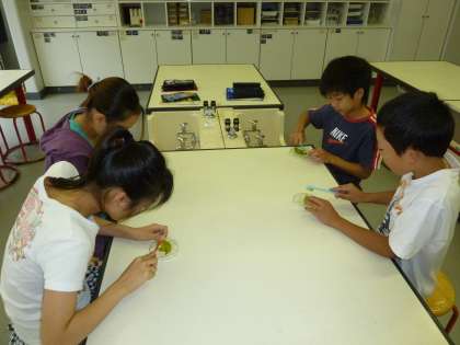 理科では、歯ブラシを使って丁寧に歯をたたいて、