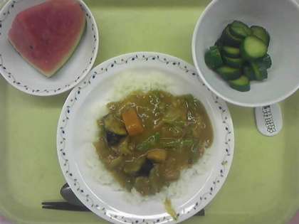 なす、セロリなどの入った、夏仕様のカレーライスです。