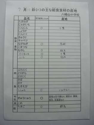 7月11日の主な給食食材の産地です。