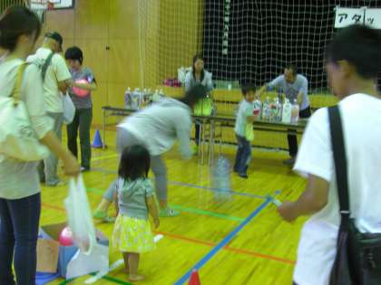 今日は、青少年上北沢地区委員会主催のこどもまつりでした。あいにくの雨で、体育館とピロティーを使って行いました。上北沢小の子どもも、八幡山小の子どももたくさん集まりました。緑丘中の人も中学生ボランティアでお手伝いをしていました。