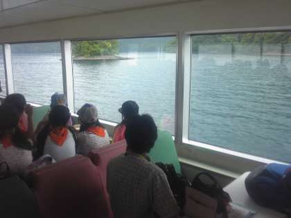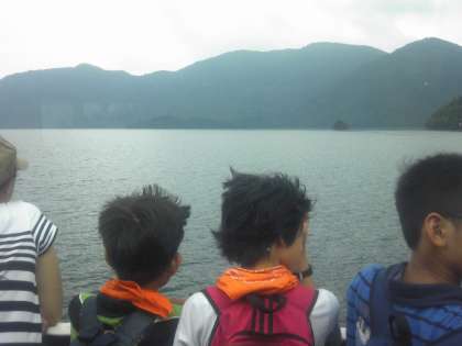 中禅寺湖を船で渡りました。湖上の涼しい風が吹き渡り、