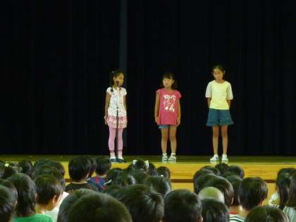 始業式では、児童代表の1年生3年生が、大きな声で、二学期の目標を発表しました!