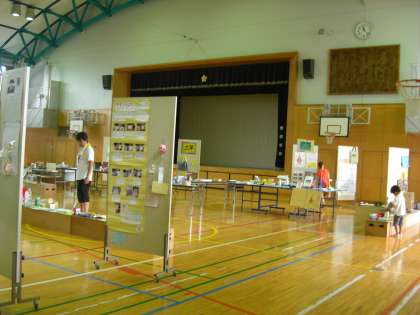 恒例の夏休み作品展を開催しております。大勢の方においでいただき、ありがとうございます。今年度は、授業日の土曜日が重なっていましたので、6日の午前中も開きました。子どもたちの作品は、内容が豊富で、一つ一つ見ていると時間を忘れてしまいそうです。10日は、中休み、昼休み、15:40−16:45に開いています。