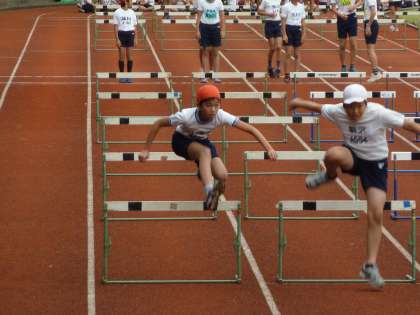 全員が、100メートル走、50メートルハードル、走り高跳び、走り幅跳びの4つの種目に分かれて競技をしました。運動会後、朝や休み時間に練習を重ねてきました。