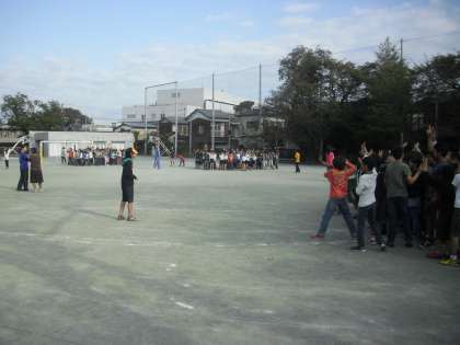 でも、マスとマスの間には、お化けに仮装した集会委員の子供だちが・・・