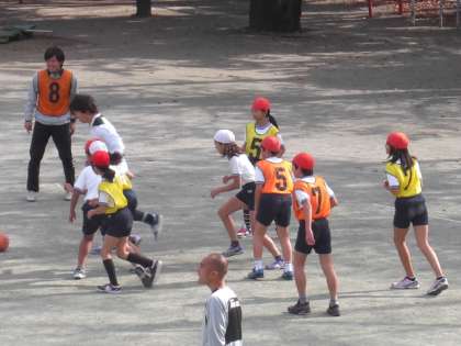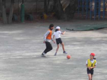 きょう5年生は、ヴェルディの方に来ていただいてサッカーを教えていただきました。2つのボールで試合をしました。男子も女子も楽しんでいっしょうけんめいサッカーをすることができました。