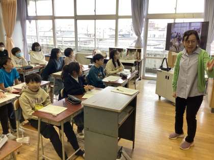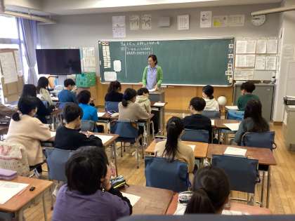 11月20日(水)1校時、5年3組の子供たちは、八幡山幼稚園の先生を学習支援者として迎え、来週行われる「ミニ先生」のための保育実習の打合せをしました。当日の自分たちの役割を知り、「早く行きたいな。」「早く会いたい。」などと子供たちはつぶやいていました。どんな交流になるか、来週が楽しみです。