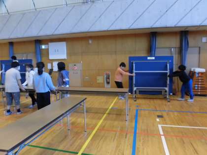 会場準備は6年生が行いましたが、片付けは5年生が担当します。みんなで協力してあっという間に体育館は元のとおりに戻りました。5年生、これからの活躍も期待しています!